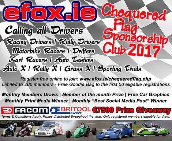 Competitors in all forms of Motorsport are eligible to partake and can register online from early January. The first 50 eligible entries will then receive a goody bag pack including a mug, insulating tape, duck-tape, cable ties and a selection of E Fox decals for their car, kart or bike.