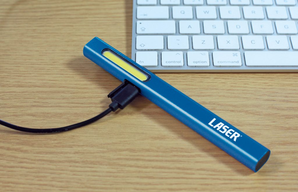 Laser Tools has added a new aluminium pen light (part number 8597) which it says integrates a 2W COB lamp with a 2W LED torch, and is powered by a rechargeable 750mAh lithium-ion battery.