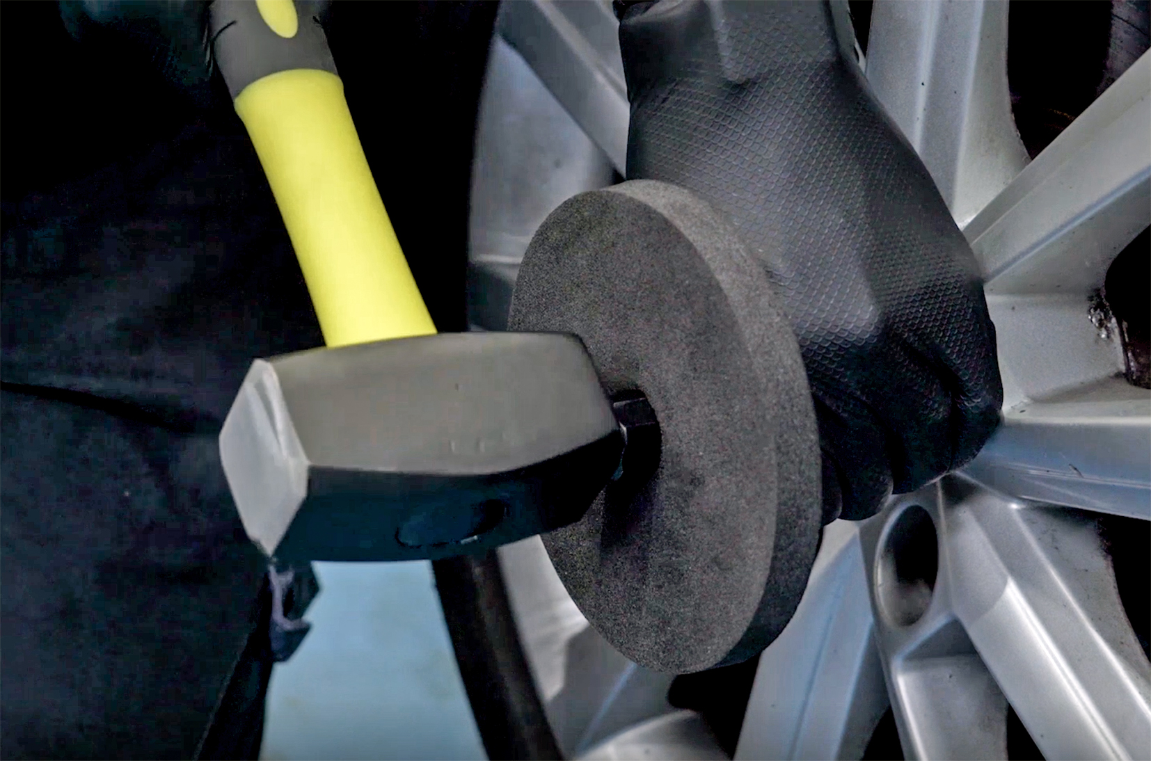You’ll notice the tool includes a sliding shroud that protects the alloy wheel. A few blows with a hammer to set the remover into the locking wheel nut, then, using the supplied impact driver simply remove the locking wheel nut. A few sharp blows onto the impact driver is all it takes.