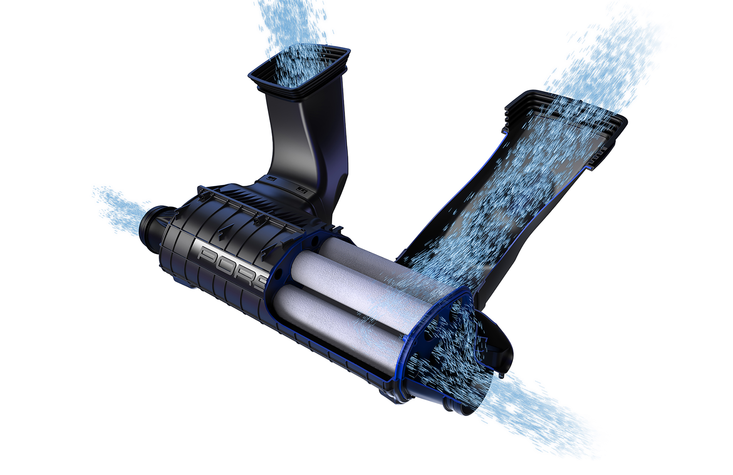 Tests carried out by an external laboratory on an Audi 1.4 TFSI have confirmed an increase in horsepower of up to four per cent with respect to the standard air vent. Maximum performance, which exceeds that of the traditional panel type, is the result of a new concept in deep filtration. Air flow passes from the outside to the inside via the structure, which comprises one or more pipes – each of which is coated in a rigid, non-woven filter media with synthetic hydrophobic fibres, structured with a specific diameter and a distributed ‘porosity gradient’.